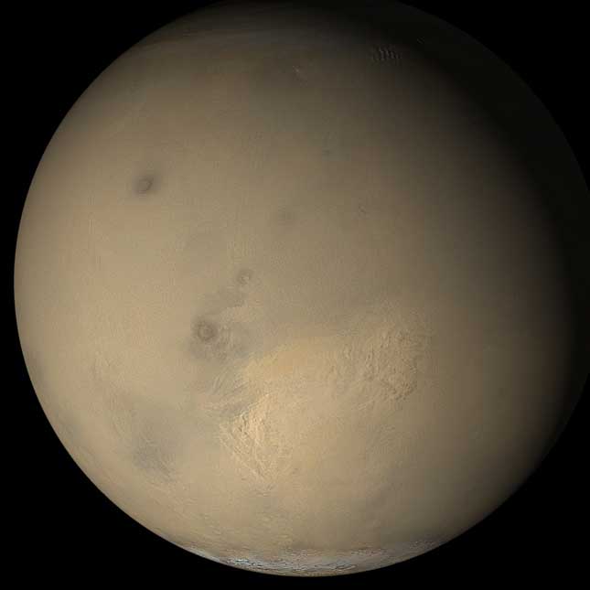 O planeta vermelho é palco periódico de imensas tempestades de areia. Elas podem durar meses, tomando quase toda a sua esfera. Mas, como sua atmosfera é extremamente tênue, mesmo os ventos que chegam a 100 km/h não fazem delas tão destrutivas quanto as que acontecem na Terra.